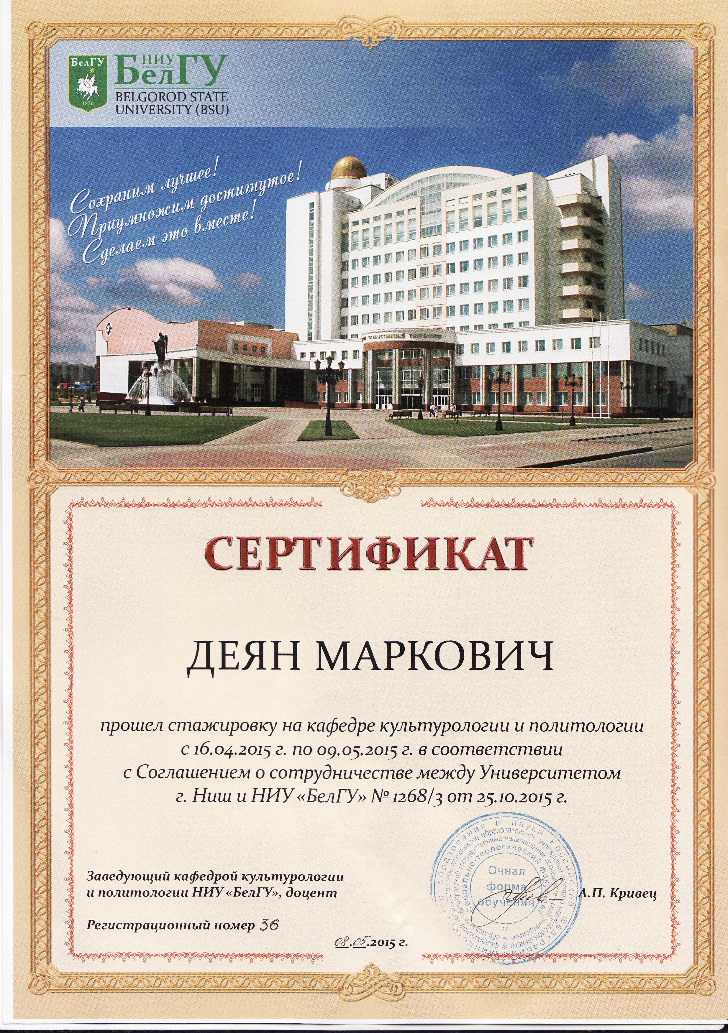 Предавања по позиву држао је у Руској Федерацији, у Кемерову (Кемеровски државни Универзитет) и у Белгороду (Белгородски државни Универзитет, БелГу).