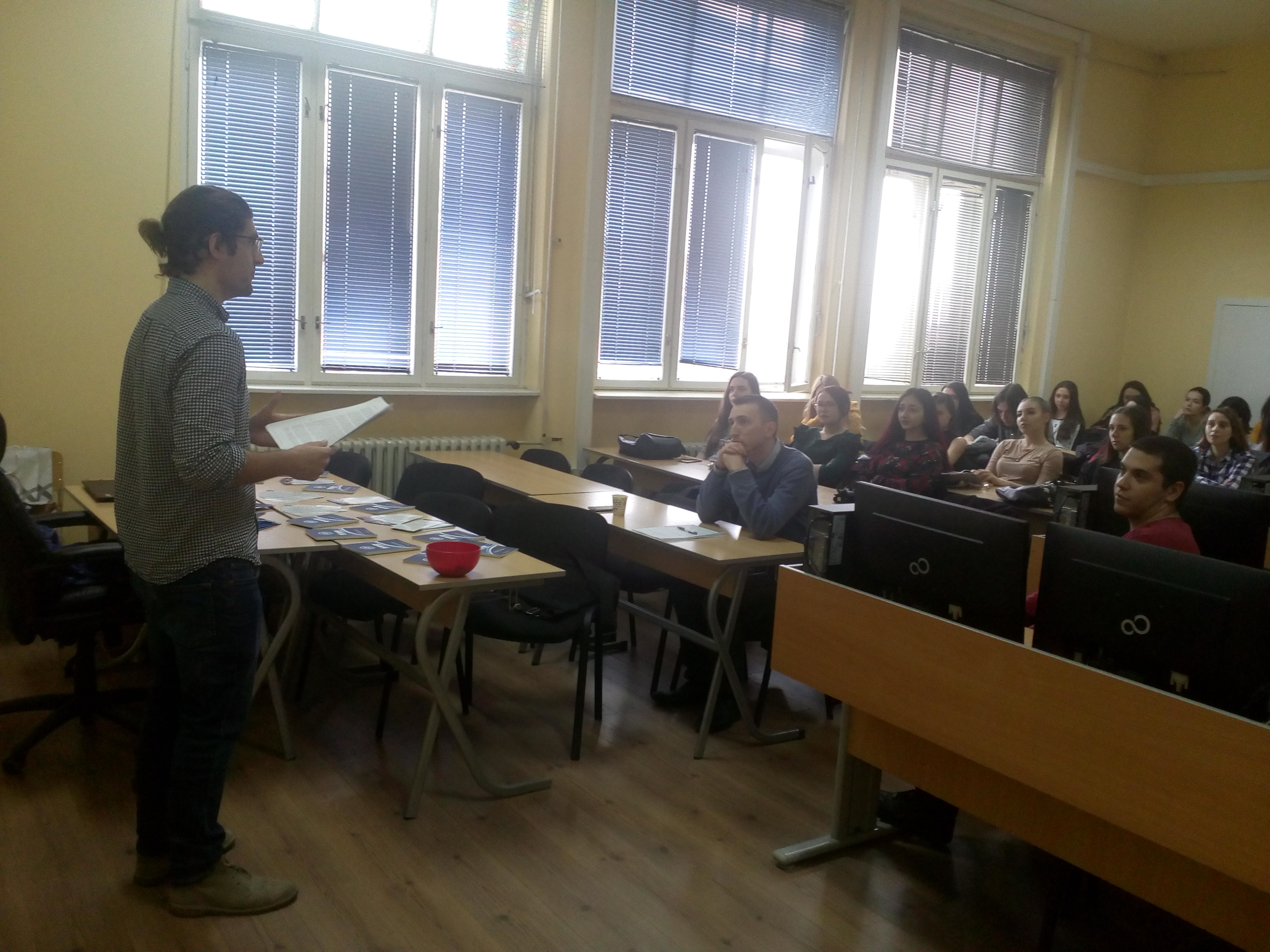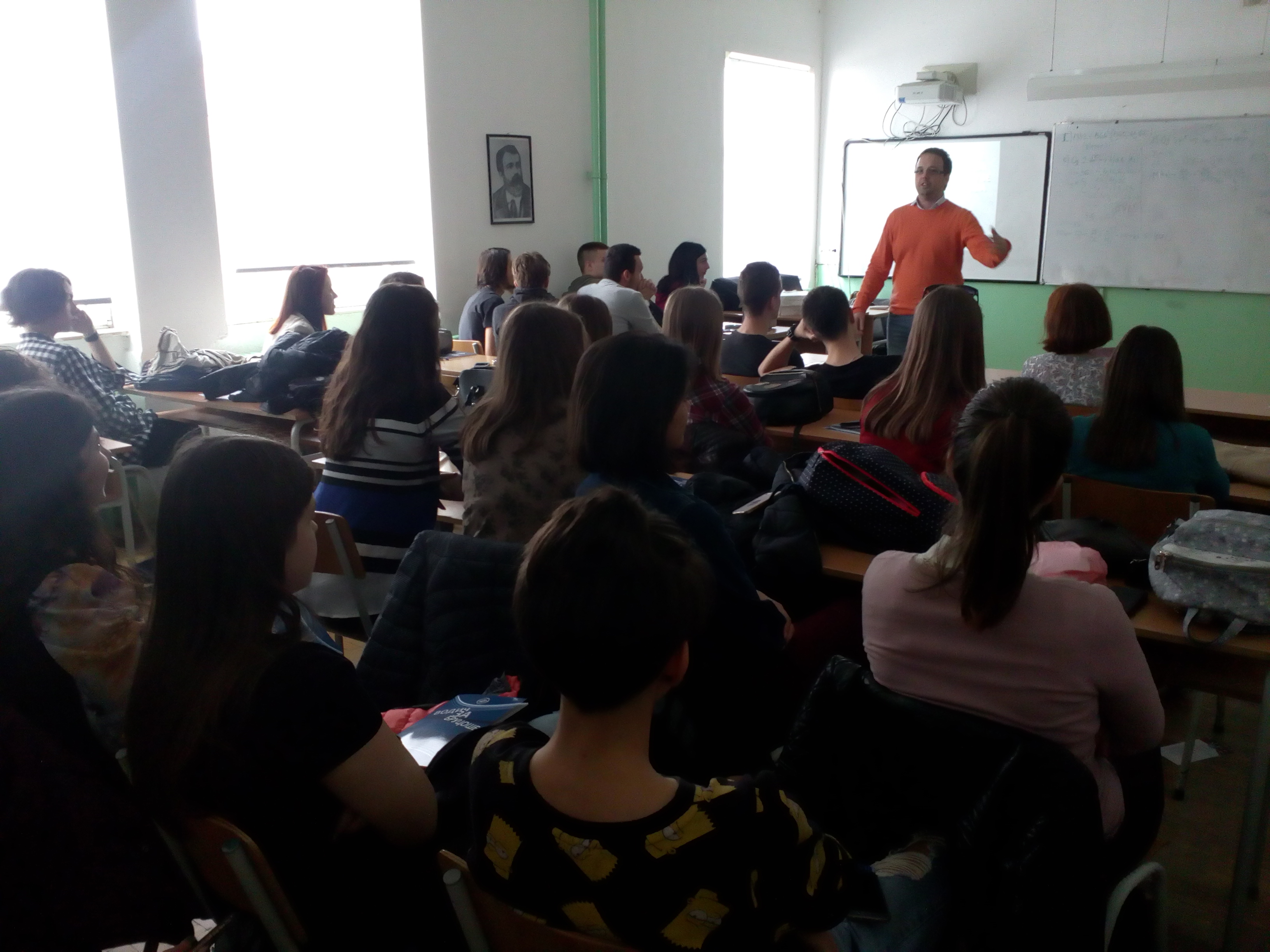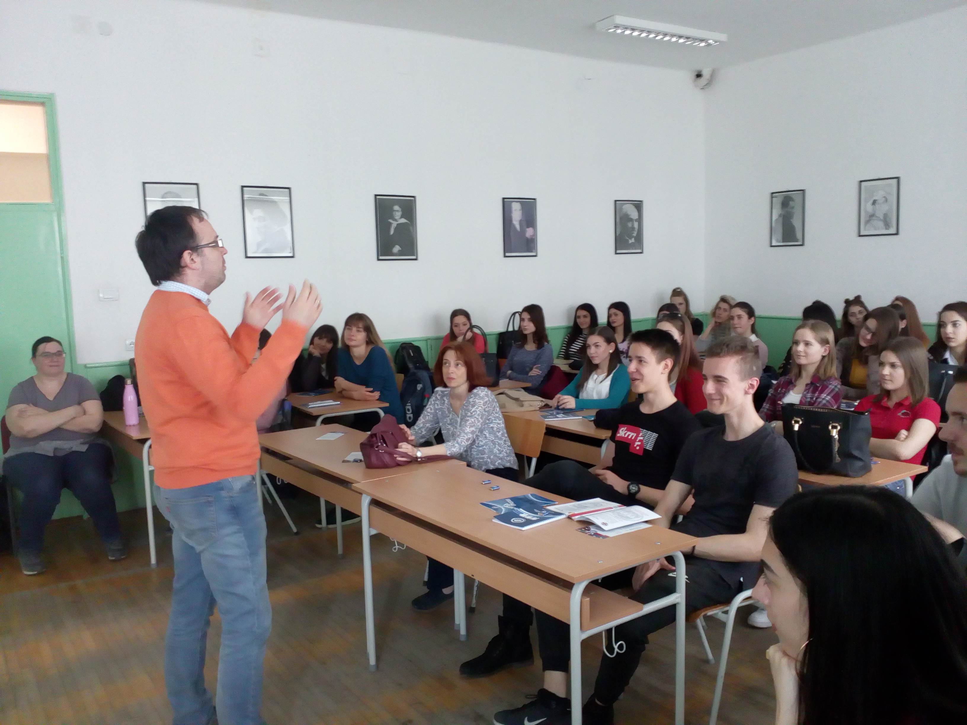 11. априла, проф. др Михаило Антовић одржао је научно-популарно предавање под називом Од школске граматике до истраживања мозга: Лингвистика као пут да се објасни људска природа. Предавање је одржано у гимназији Светозар Марковић, а присуствовали су ученици трећег разреда. Током предавања, уз презентацију и велики број аутентичних примера, ученици су могли да се упознају са основама когнитивно-лингвистичких проучавања језика и когнитивних процеса на којима је заснована језичка компетенција. Само тема предавања побудила је велико интересовање, тако да су се ученици већ у току предавања у више наврата укључивали у дискусију. На крају је уследила и презентација студијског програма ОАС англистике, а ученици су могли да чују и основне информације о пријемном испиту, условима уписа и могућностима за даљи рад и усавршавање које овај студијски програм нуди.