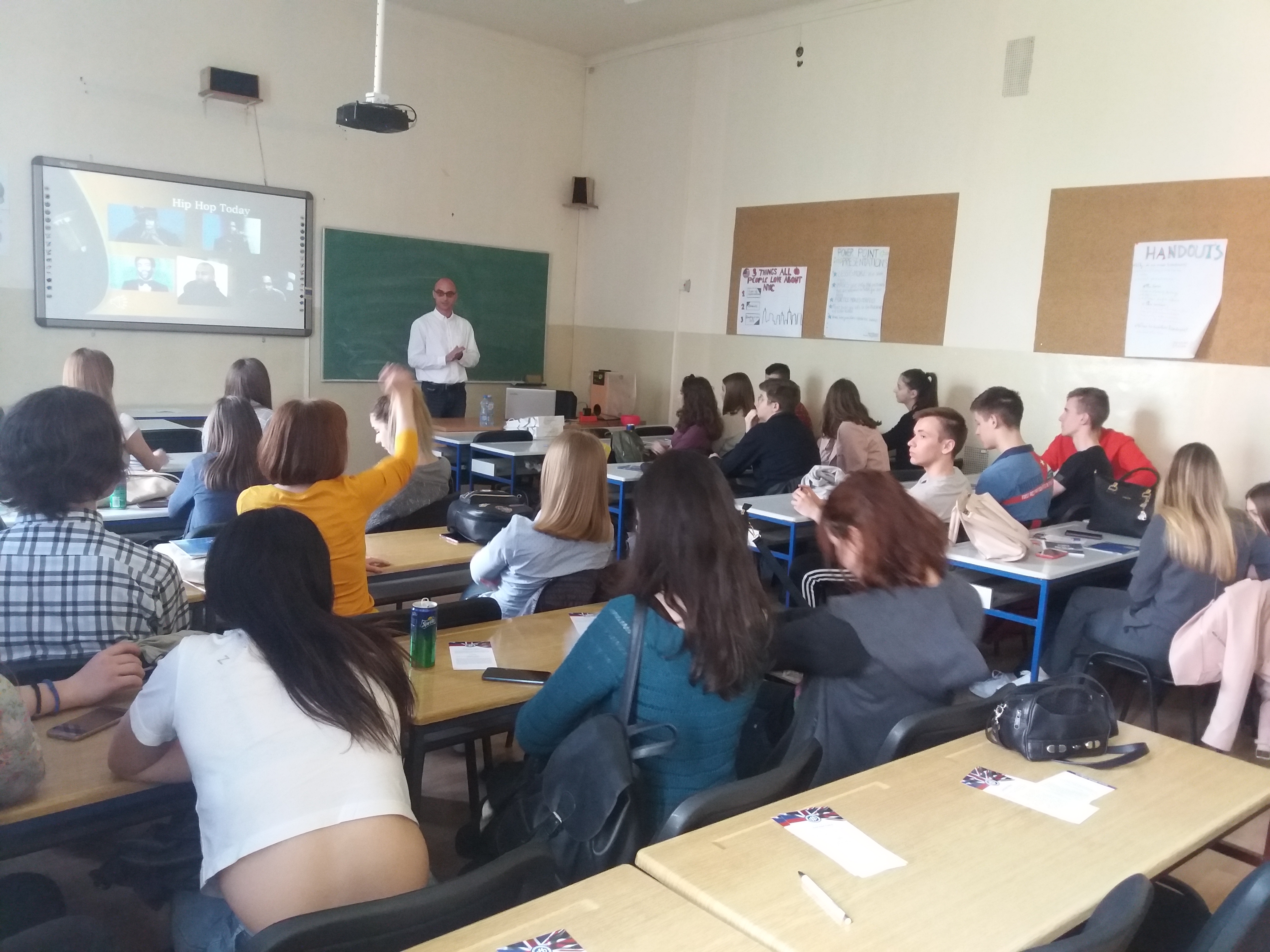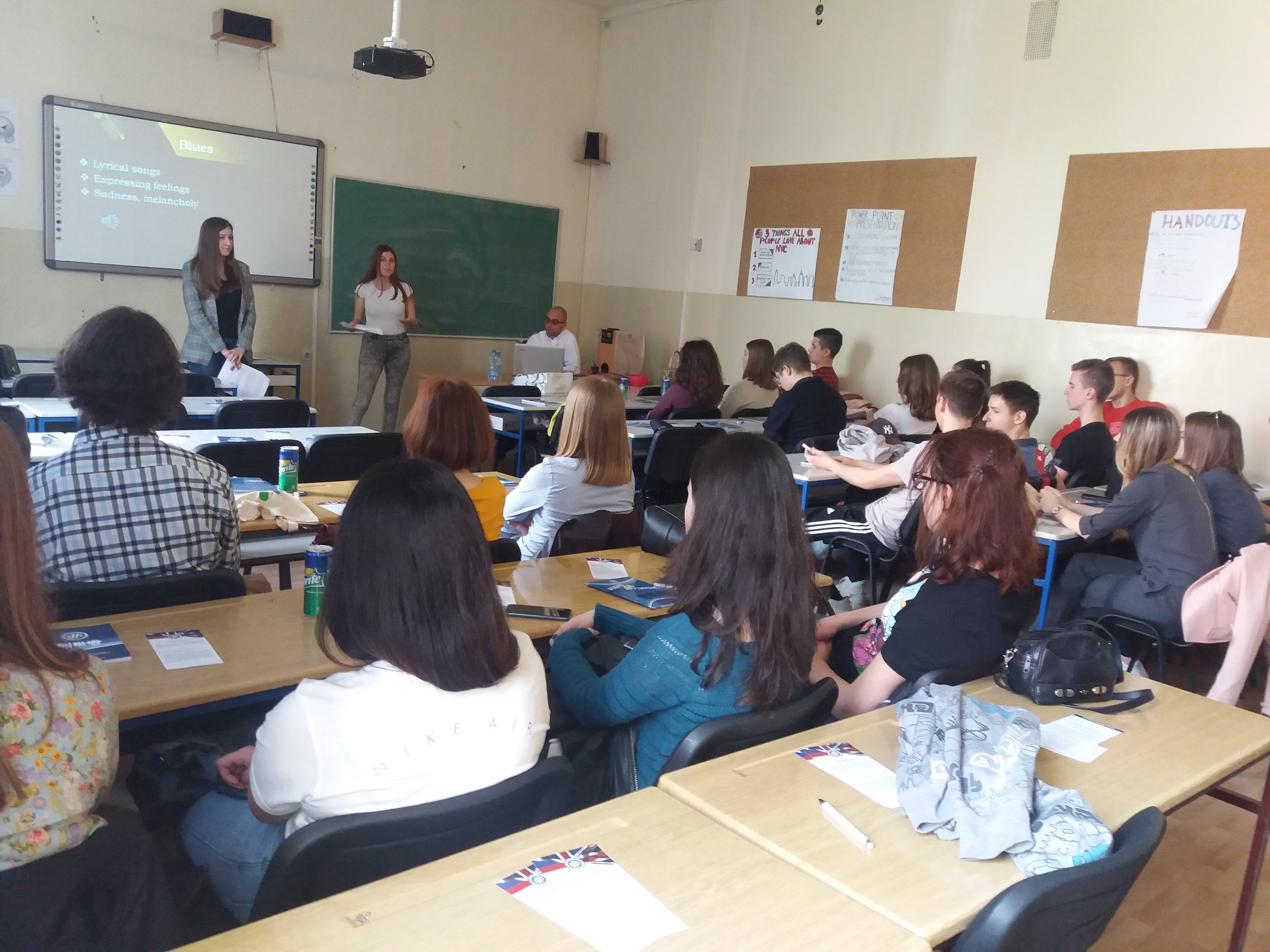 10. априла одржана је радионица под називом African-American Music, коју су одржале Тина Стојановић и Марија Ђорђевић, студенткиње треће године ОАС англистике, под менторством доц. др Ане Коцић. Радионици су присуствовали ученици трећег разреда гимназије Светозар Марковић из Ниша, и током саме презентације имали су прилику да се укључе у дискусију, поставе питања и поделе своје ставове и мишљења са предавачима. Након радионице је уследила и додатна дискусија, а ученици су такође упознати са структуром студијског програма и условима уписа.