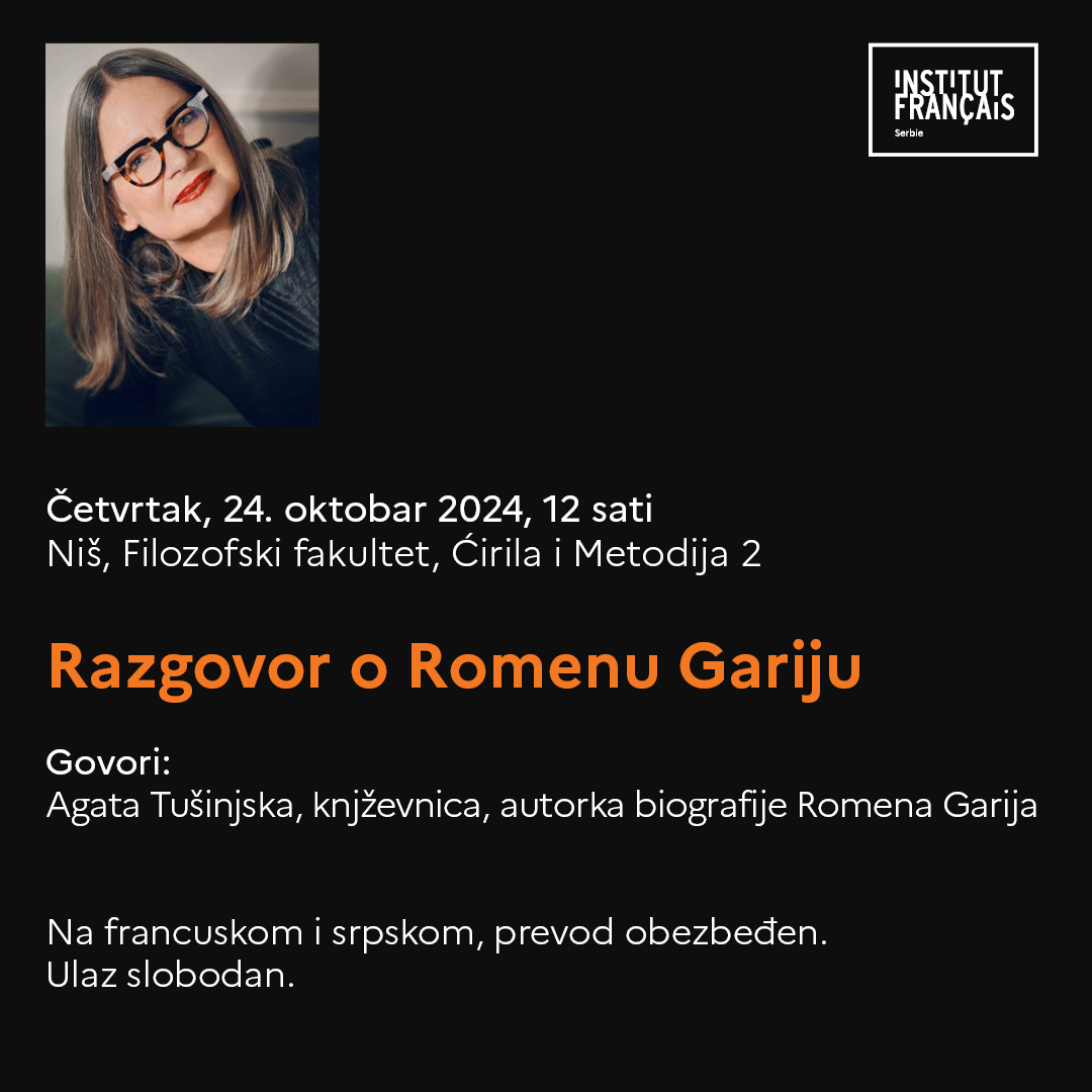 У оквиру свог гостовања у Србији, Агата Тушињска ће посетити Ниш и одржати предавање о Ромену Гарију на Филозофском факултету, у четвртак 24. октобра у 12.00 сати, у сали 434.
