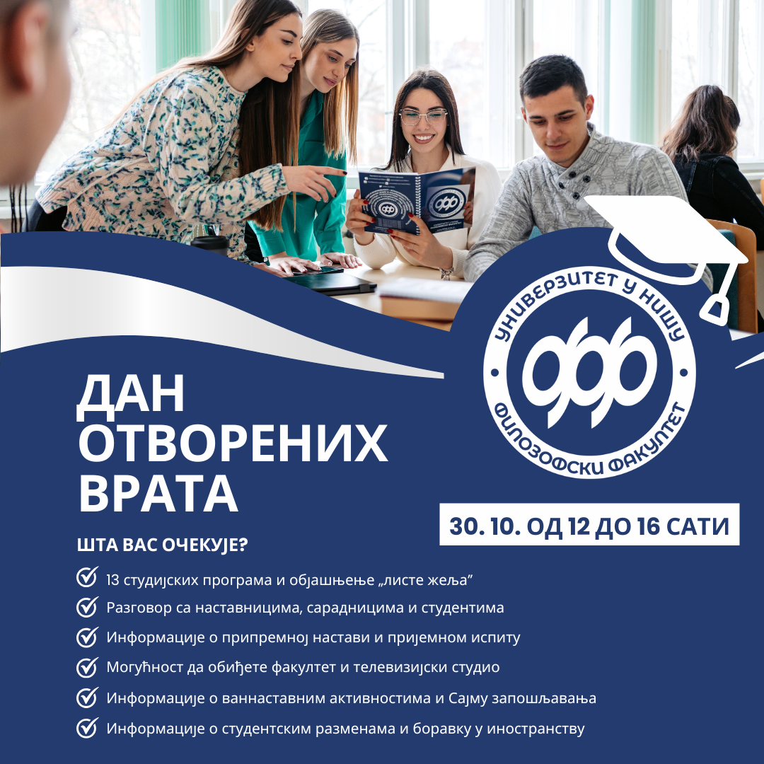 Филозофски факултет у Нишу организује Дан отворених врата у четвртак, 30. октобра, од 12 до 16 сати.